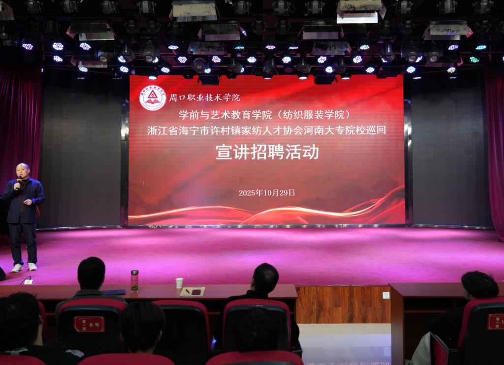 浙江省海宁市许村镇家纺人才协会在我院开展河南大专院校巡回宣讲招聘活动
