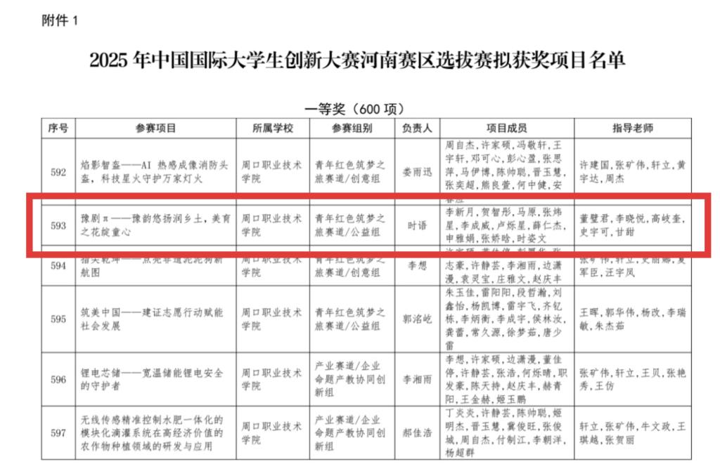 六、我院学生荣获中国国际大学生创新大赛(2025)河南赛区选拔赛一等奖