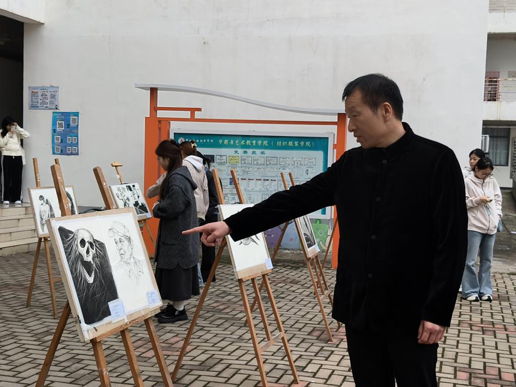学院党总支书记王春生、院长高岐奎驻足于学生作品前,仔细观看并给予高度赞扬。他们勉励同学们要勤勉钻研专业知识、锤炼过硬本领;同时要求教师队伍聚焦学生发展,保障教学的高质量与高水平。