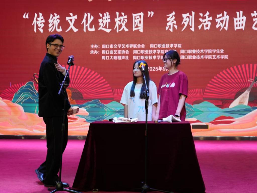 艺术家们凭借精湛技艺和生动演绎,将曲艺艺术的独特魅力展现得淋漓尽致。现场掌声、笑声此起彼伏,师生们也在欢声笑语中触摸到了传统文化的温度。