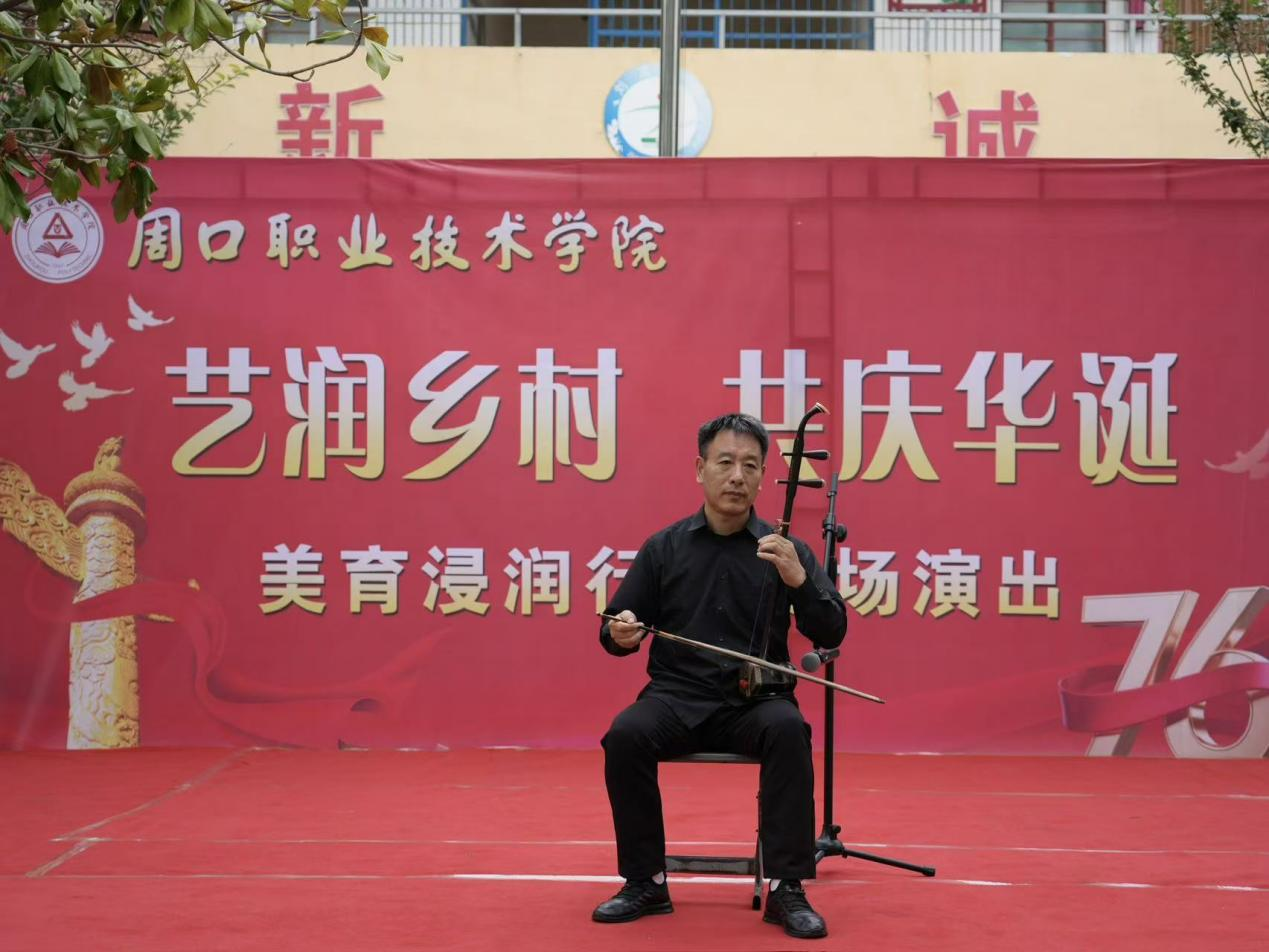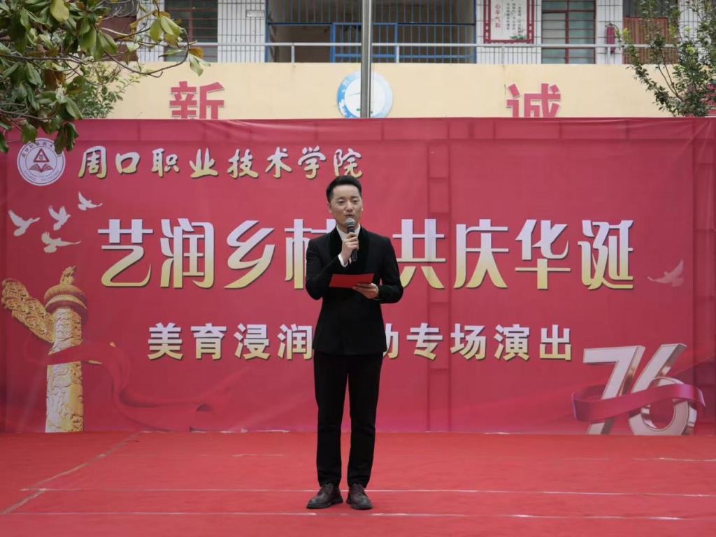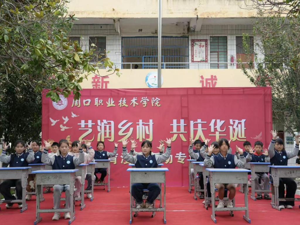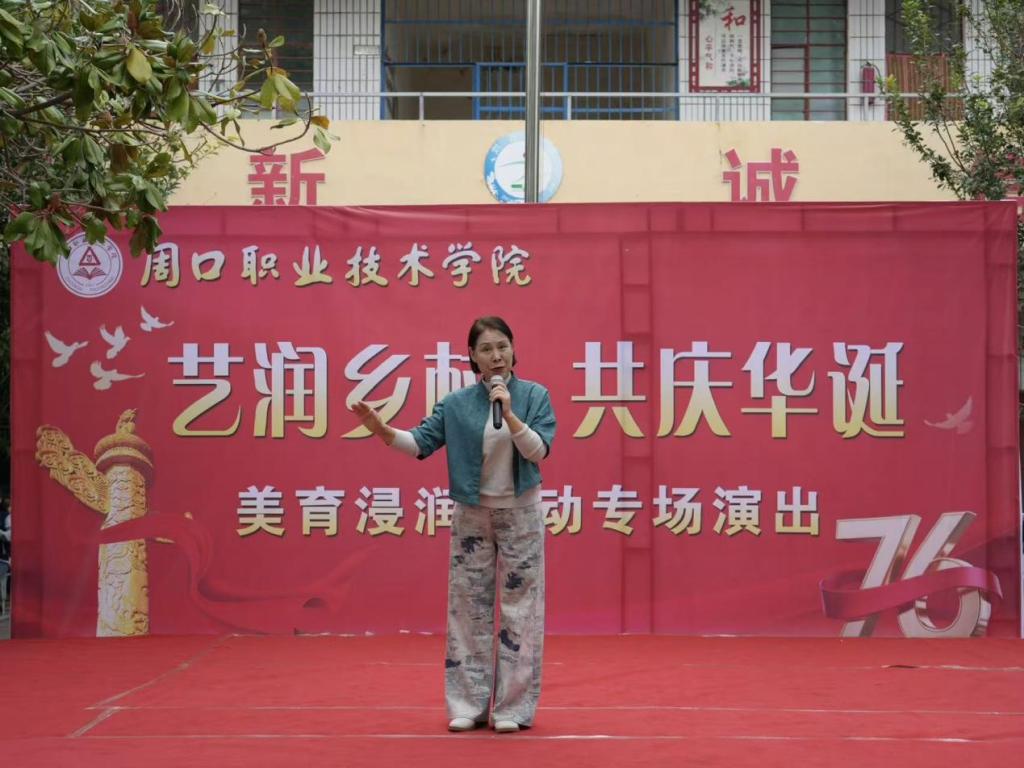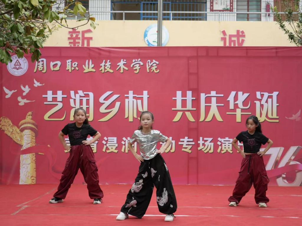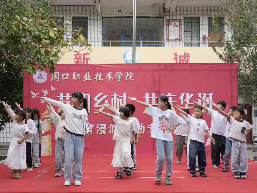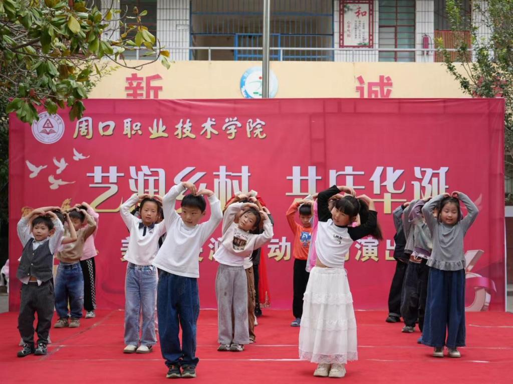 此次“艺润乡村,共庆华诞” 专场演出,是周口职业技术学院与刘庄小学深化校地美育合作的生动实践,也是学校落实 “以美育人、以文化人” 教育理念的具体举措。通过将优质艺术资源延伸至乡村校园,不仅丰富了乡村孩子们的精神文化生活,更帮助他们拓宽艺术视野、提升审美素养。值此国庆来临之时,这场演出也成为一堂生动的 “美育 + 爱国” 教育课,让爱国情怀在艺术熏陶中悄然扎根。未来,周口职业技术学院将继续推进美育浸润行动,探索更多校地协同美育模式,持续为乡村教育注入艺术活力,引导更多乡村孩子感受艺术之美、文化之韵,在成长中厚植爱国情怀,以昂扬姿态迎接祖国华诞、拥抱美好未来。