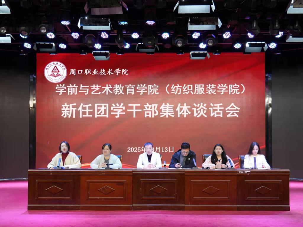 为进一步明确团学干部职责,有效凝聚工作合力,推动学院团学工作高质量发展,10月13日,学前与艺术教育学院(纺织服装学院)在艺术演播厅召开2025新任团学干部集体谈话会。学院党总支书记王春生出席会议并讲话,学管办主任郑玉凡、团总支书记刘馨馨、就业指导员董璧君、资助专员史宇可、25级辅导员及新任团学干部参加会议。会议由副院长杨晨主持。