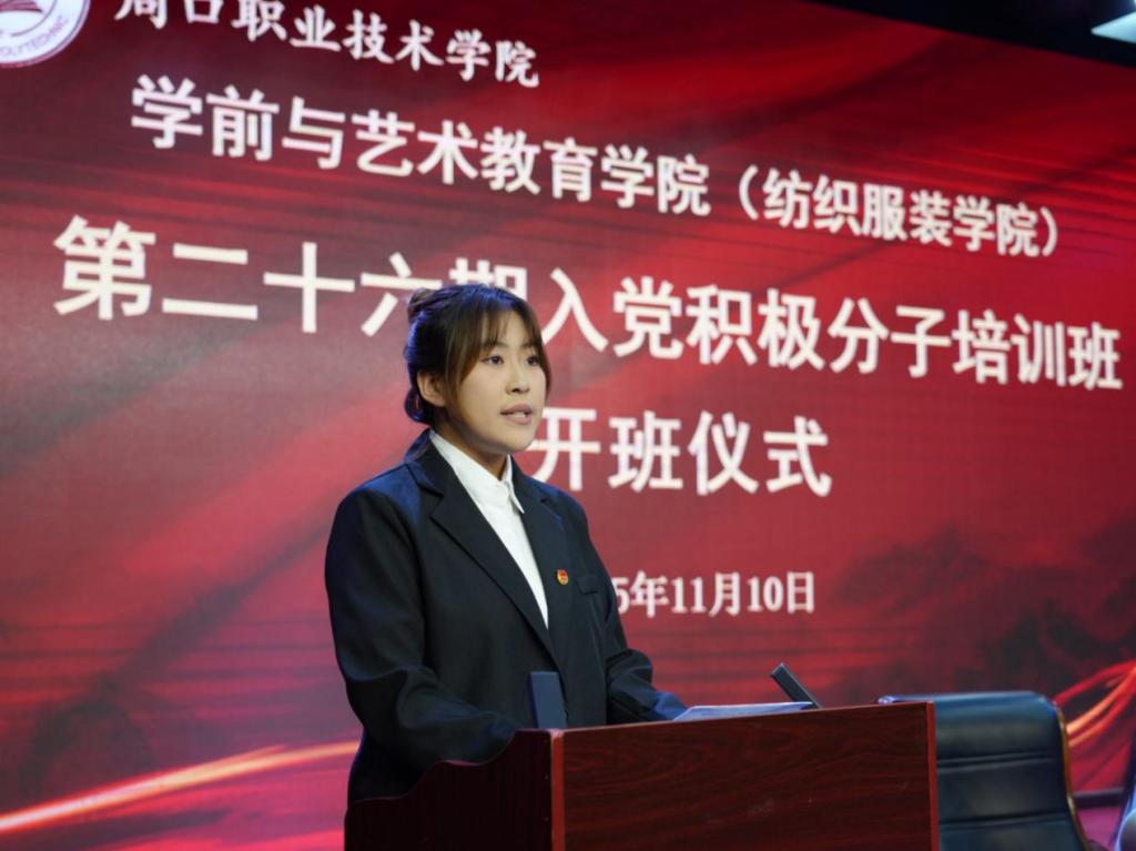 学院党总支书记王春生着重强调了培训的重要意义与纪律要求,并勉励全体学员端正入党态度、筑牢思想根基;党总支副书记、院长高岐奎表示,希望全体入党积极分子以党员标准严格自我约束,在学习生活中锤炼品格,在实践锻炼中勇挑重担,充分发挥先锋模范作用;培训班班主任刘馨馨宣读了本次培训的教学安排与纪律要求;24级学前教育01班刘晓宇同学作为入党积极分子代表发言,深情表达了对党组织的崇敬之情与感恩之心。