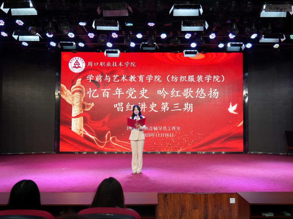 11月16日晚,我院“画外音”辅导员工作室在艺术演播厅举行第三期唱红歌、讲党史活动,学院入党积极分子及24、25级学生干部参加活动。