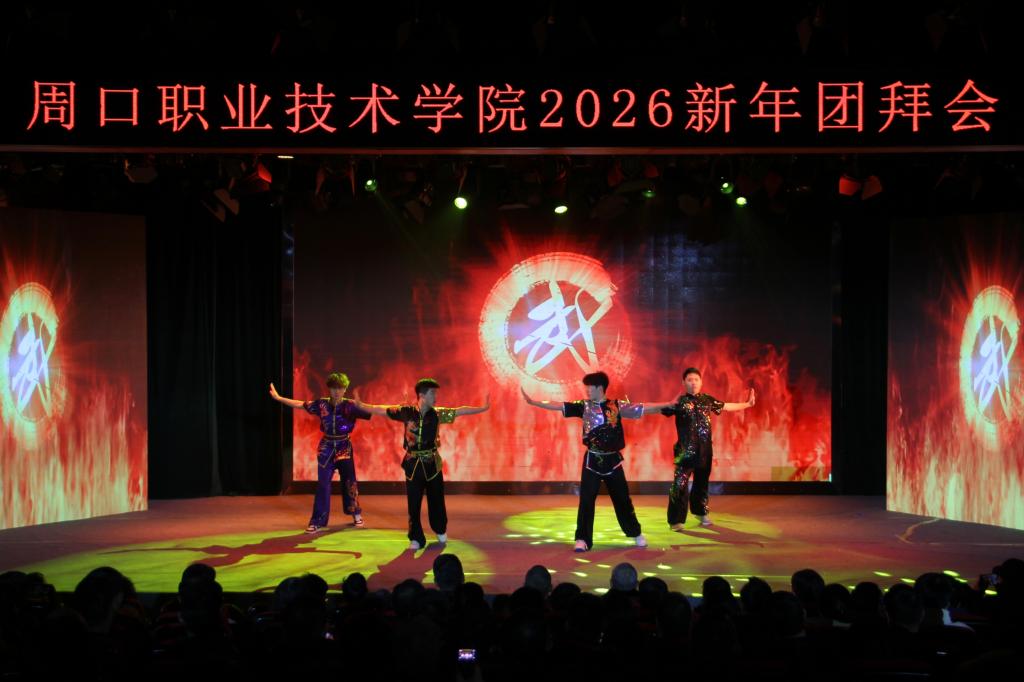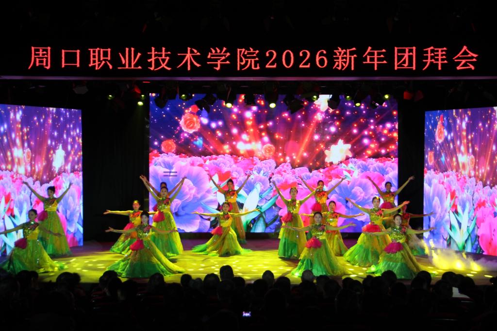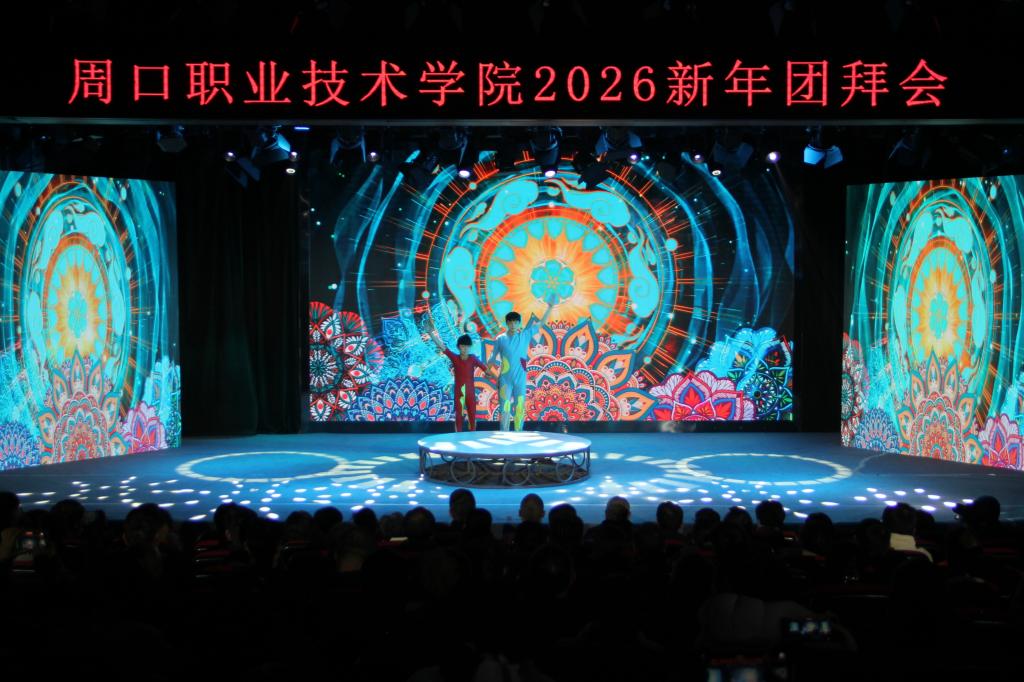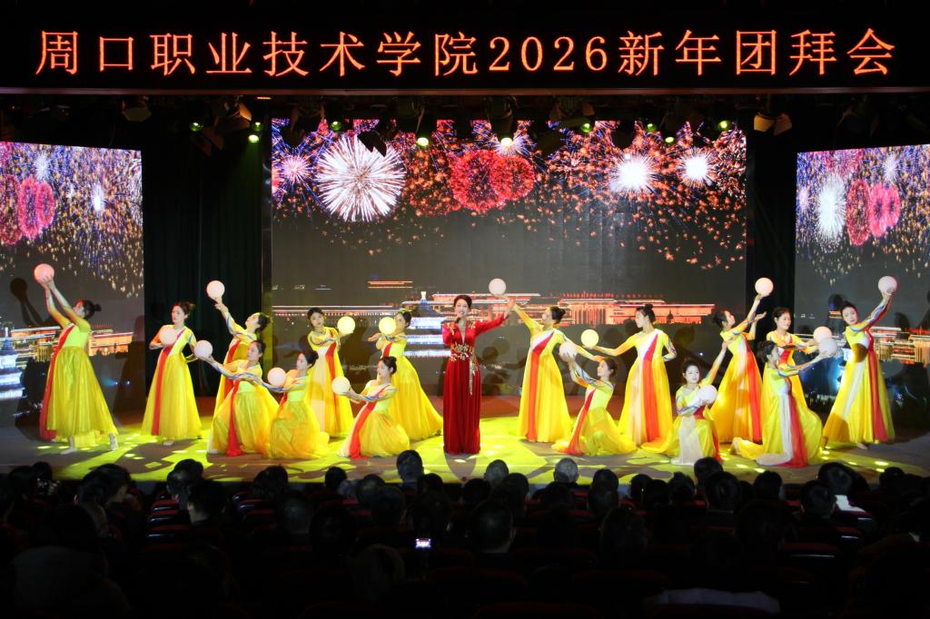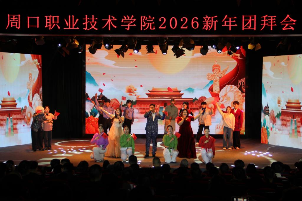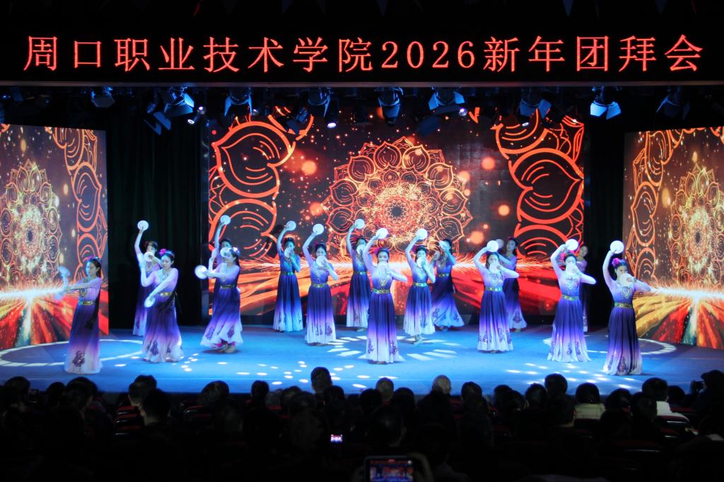金蛇辞旧岁,骏马踏春来。12月30日下午,由我院承办的周口职业技术学院2026新年团拜会在开元校区砺德厅隆重举行。周口职业技术学院校长李清臣,校党委副书记、工会主席郭汝礼,副校长李秀萍、于爱霞,校纪委书记、监察专员李向东出席团拜会。学校全体中层干部、退休老同志代表及800名师生代表参加团拜会。活动由校党委副书记李明臣主持。