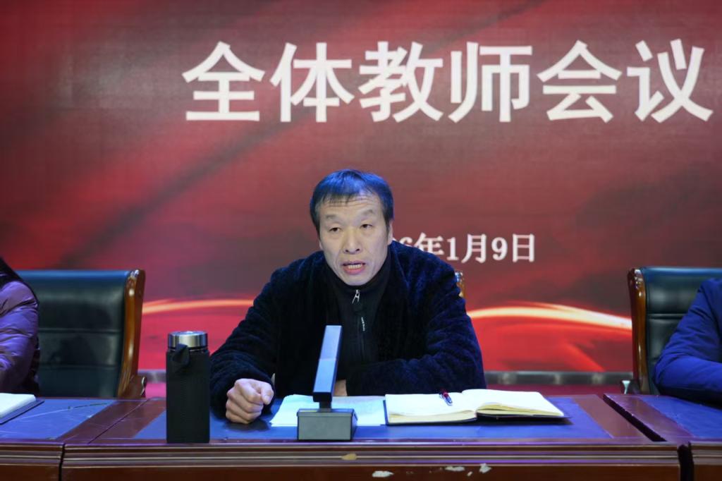 院长高岐奎系统总结了学院2025年度党建、教学和学管各项工作的整体成效,并对学院2026年各项工作进行了部署安排,还对教师教学能力比赛和智慧课程建设两大项目进行了动员,鼓励教师积极参加。