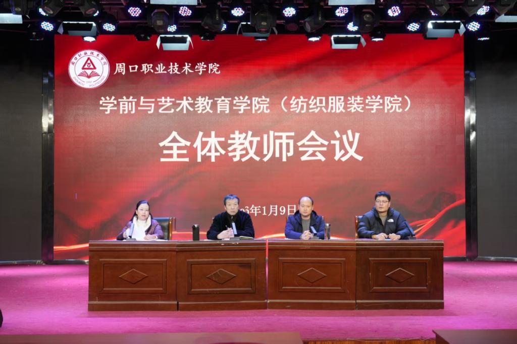 为做好本学期期末及寒假相关工作并安排部署下学期工作,1月9日下午,学前与艺术教育学院(纺织服装学院)在艺术演播厅召开全体教师会议,会议由副院长杨晨主持。