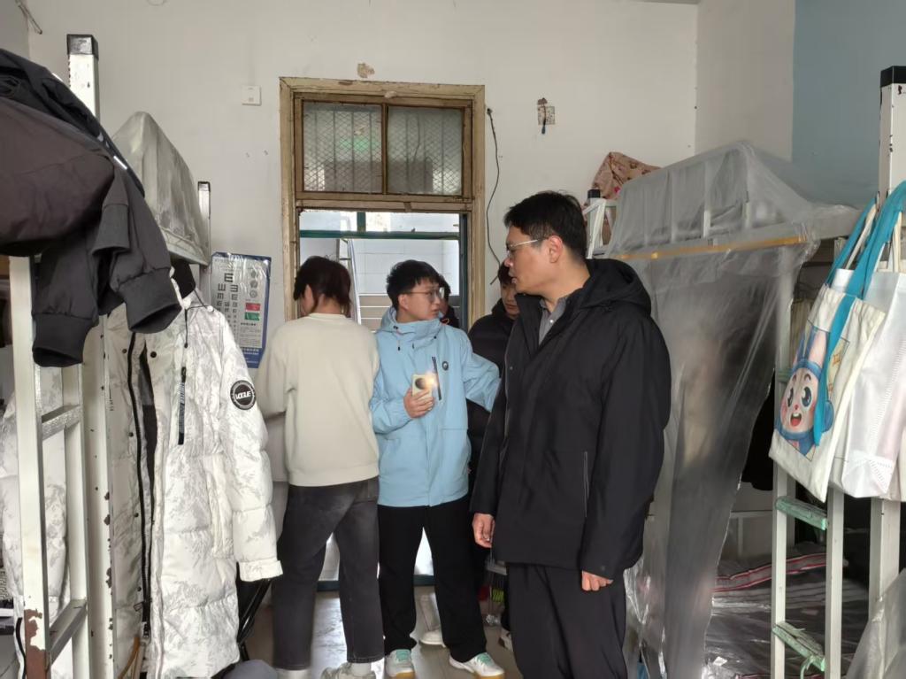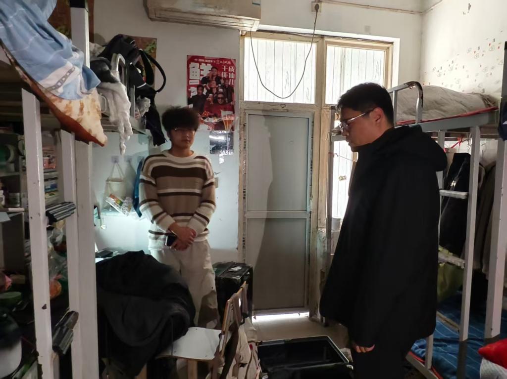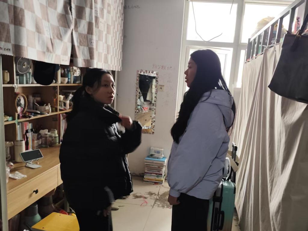 副院长杨晨、团总支书记刘馨馨带队开展学生宿舍安全卫生专项检查。检查前明确工作要求,随后检查组深入各寝室,重点对用电安全情况进行细致排查。针对发现的问题现场提出整改意见,并反复叮嘱同学们离校前务必切断所有电源,彻底杜绝安全隐患。