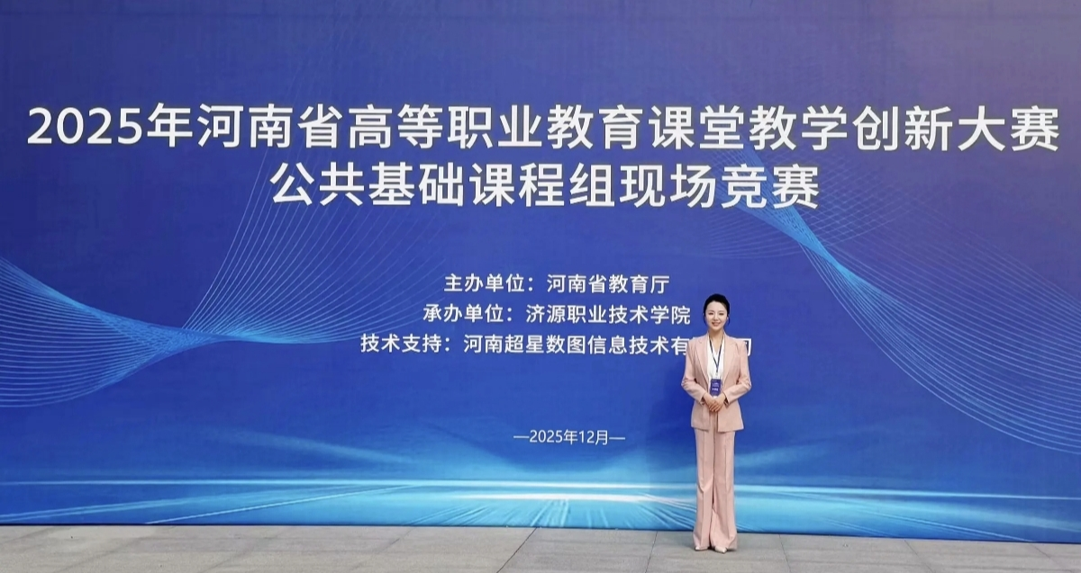 河南省高等职业教育课堂教学创新大赛是省内职教领域的重要赛事,旨在深化职业教育教学改革,搭建全省高职教师教学经验交流的优质平台。我院教师张浩宇立足人才培养实际,在课程教学中创新融入数字化教学手段,教学设计既彰显出扎实教学功底,更体现了锐意进取的改革精神,最终凭借出色表现,在大赛中脱颖而出。