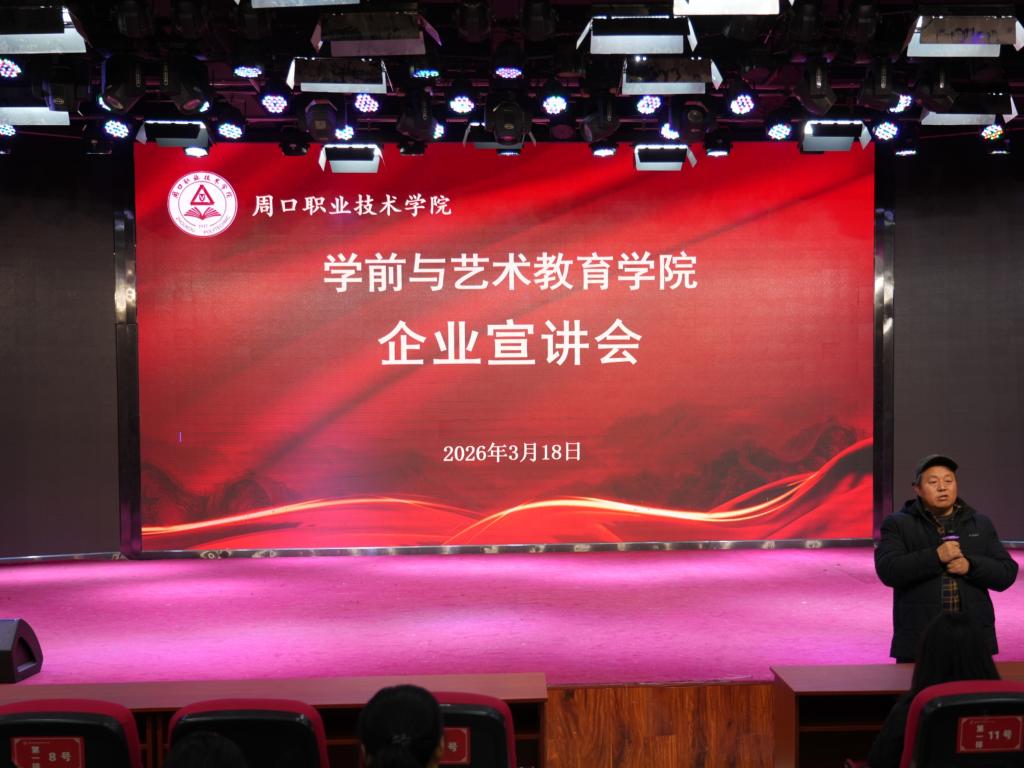 为进一步拓宽就业渠道,助力毕业生了解行业发展趋势、精准把握企业用人需求,3月18日晚,学前与艺术教育学院在艺术演播厅开展学前教育专业企业宣讲会,特邀河南丈量教育科技有限公司负责人进行专题宣讲。24级学前教育、早期教育专业全体学生参加宣讲会。