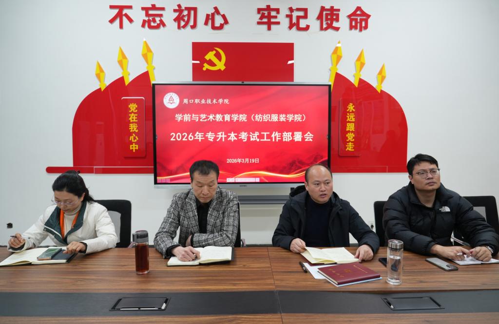 为深入贯彻落实学校2026年专升本考试工作部署要求,进一步规范考试组织流程,确保考试工作平稳有序开展,3月19日,学前与艺术教育学院(纺织服装学院)在四楼党员活动室召开2026年专升本考试工作部署会。学院领导班子成员、各教研室主任、23级全体辅导员及全体监考教师参加会议。会议由副院长耿润主持。