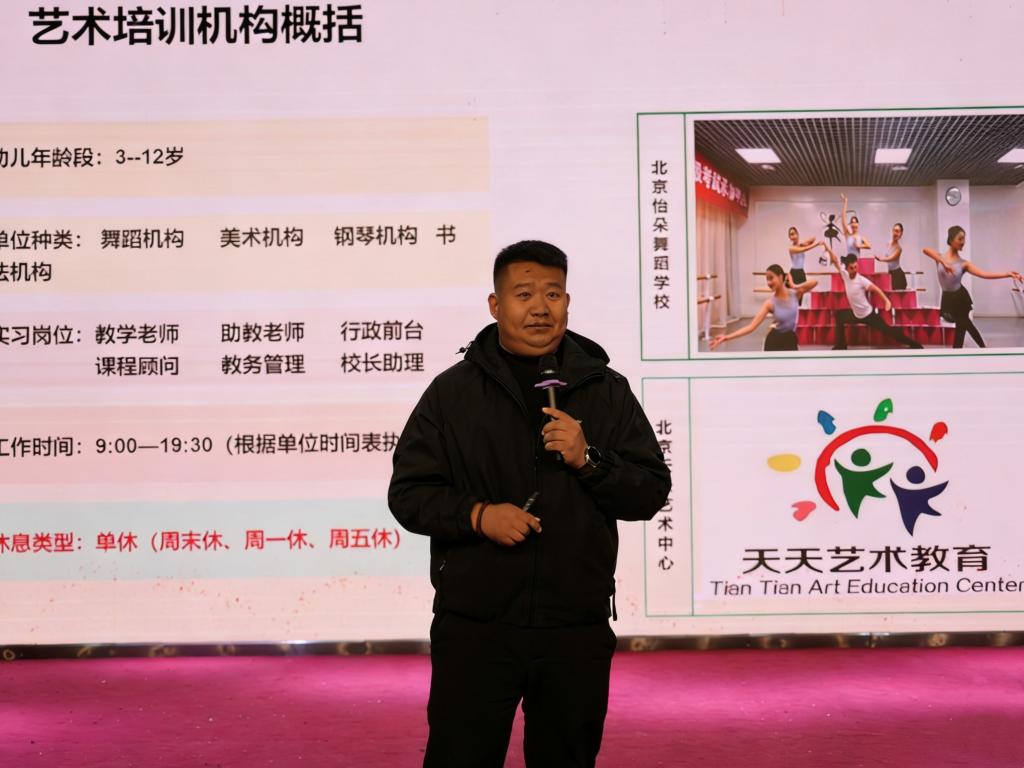 为扎实推进毕业生高质量就业,助力学前教育专业学子明确就业方向,3月22日晚,学前与艺术教育学院在艺术演播厅开展学前教育专业企业宣讲会,特邀北京天清起点教育负责人高宇翔主讲,24级学前教育、早期教育专业全体学生参加宣讲会。