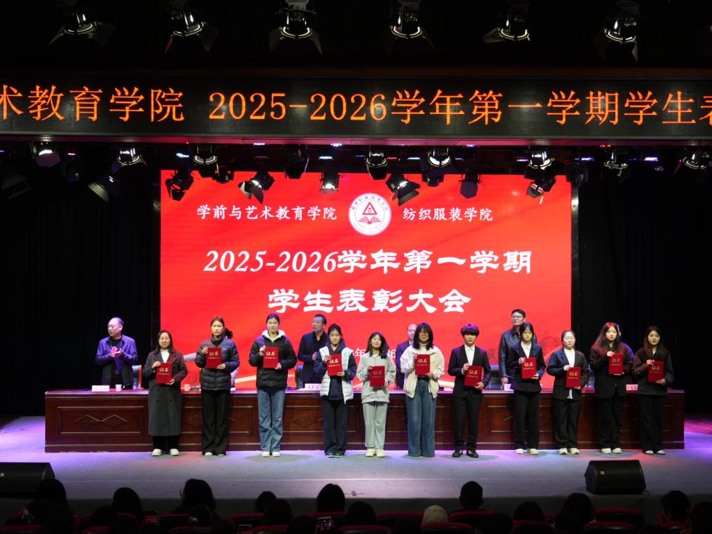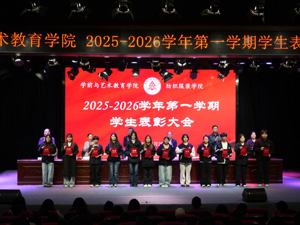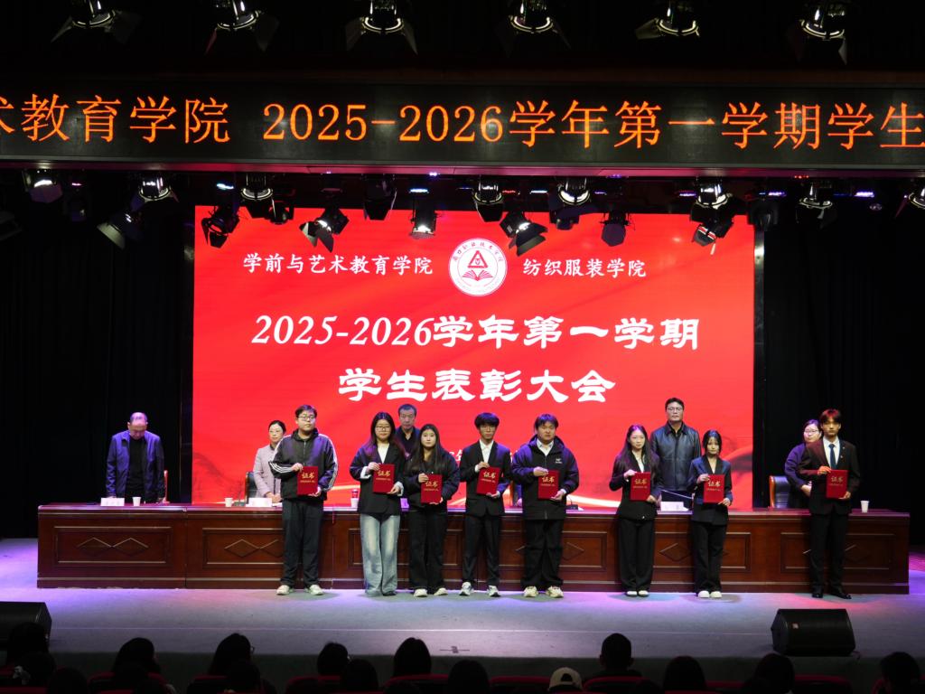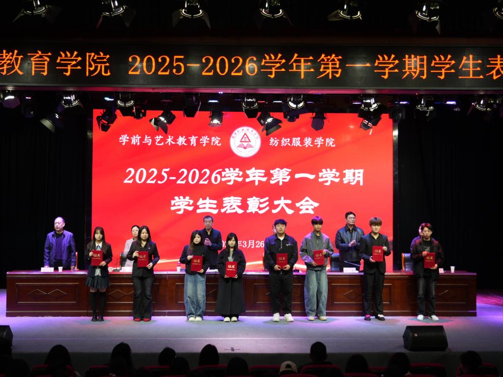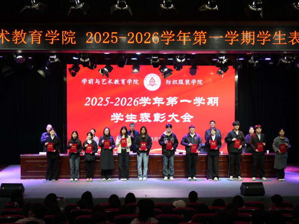 为表彰先进、树立典型,进一步激发全院学子的学习热情与奋斗精神,3月26日晚,学前与艺术教育学院(纺织服装学院)在砺德厅隆重举行2025-2026学年第一学期学生表彰大会。学院领导班子成员、全体教研室主任、辅导员及24、25级全体学生共同见证了这一荣耀时刻。