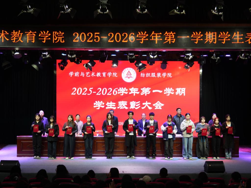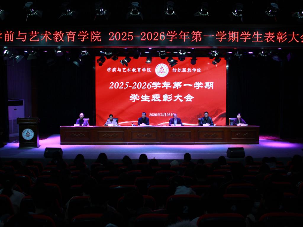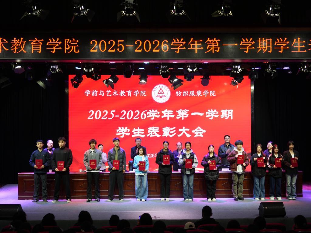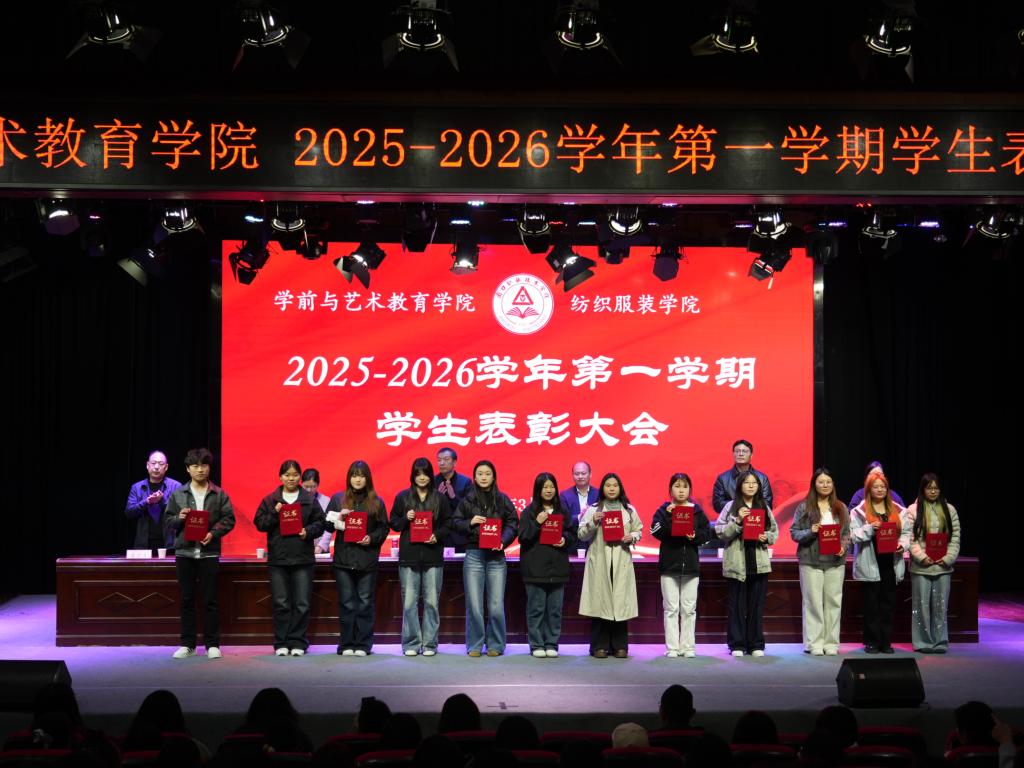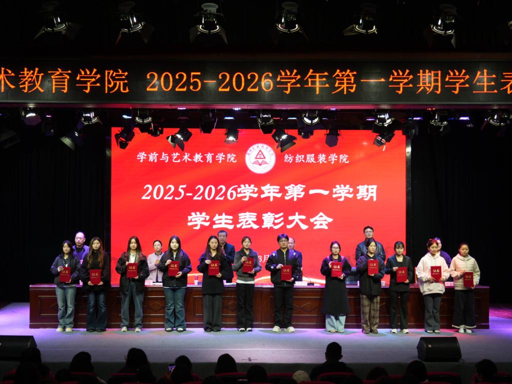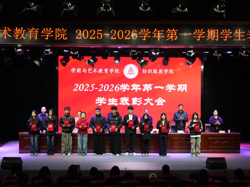 为表彰先进、树立典型,进一步激发全院学子的学习热情与奋斗精神,3月26日晚,学前与艺术教育学院(纺织服装学院)在砺德厅隆重举行2025-2026学年第一学期学生表彰大会。学院领导班子成员、全体教研室主任、辅导员及24、25级全体学生共同见证了这一荣耀时刻。