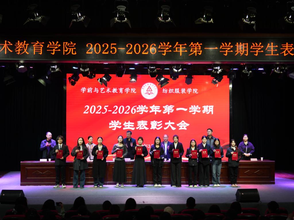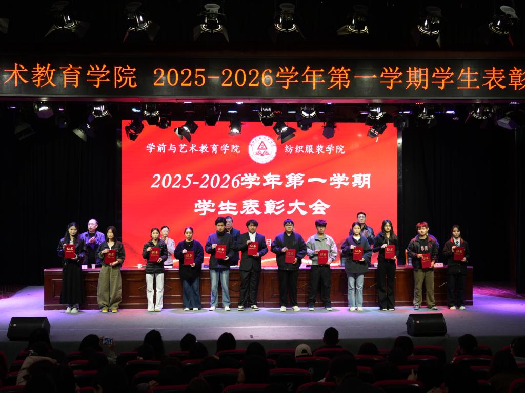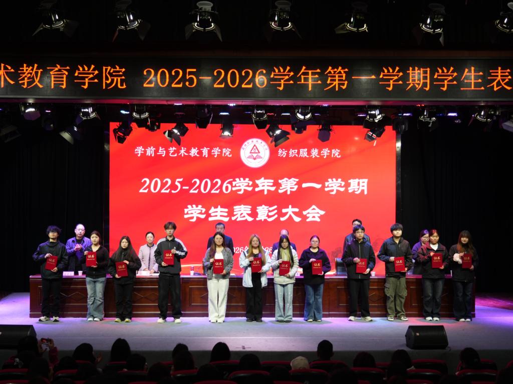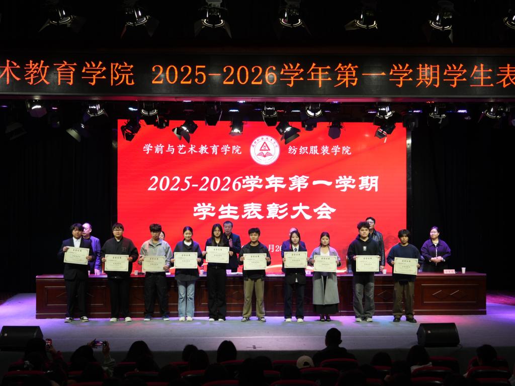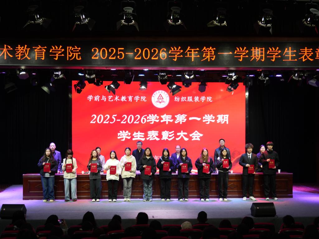 为表彰先进、树立典型,进一步激发全院学子的学习热情与奋斗精神,3月26日晚,学前与艺术教育学院(纺织服装学院)在砺德厅隆重举行2025-2026学年第一学期学生表彰大会。学院领导班子成员、全体教研室主任、辅导员及24、25级全体学生共同见证了这一荣耀时刻。
