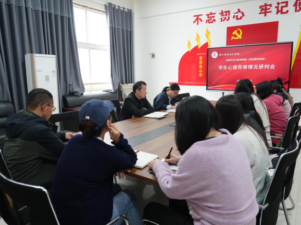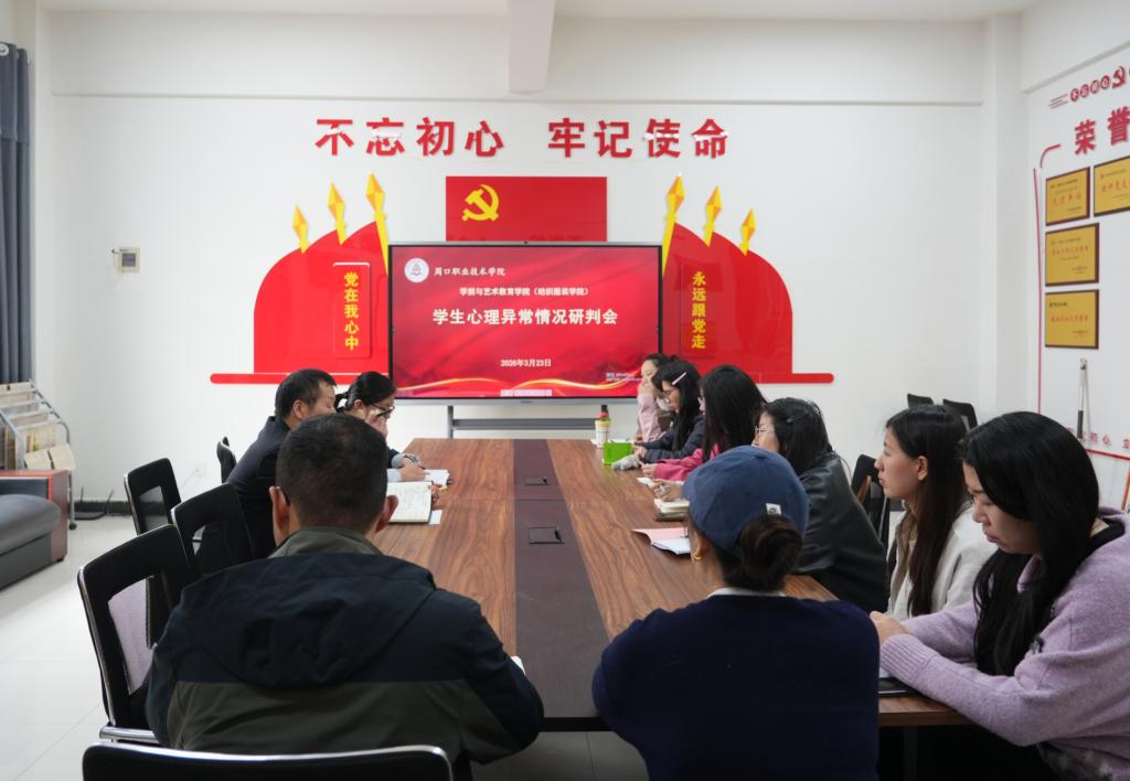 为聚焦学生新学期心理状态,筑牢心理健康安全防线,3月23日,学前与艺术教育学院(纺织服装学院)在四楼党员活动室召开学生心理异常情况研判会。学院党总支书记王春生、学管办主任郑玉凡及全体辅导员参加会议。