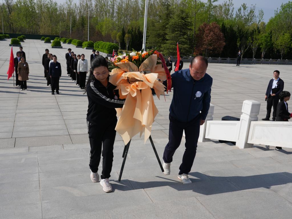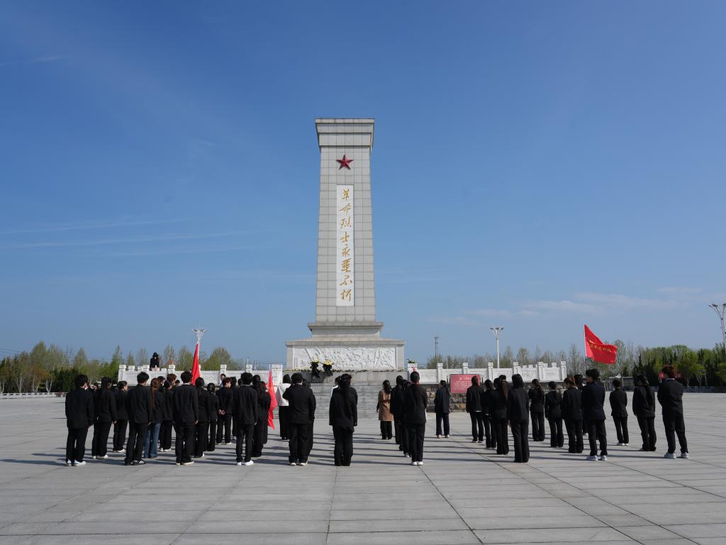 活动现场,全体师生整齐列队,庄严肃立。雄壮激昂的国歌声响起,饱含着对革命先烈的无限敬仰。院长高岐奎、副院长耿润缓步走向纪念碑,敬献花篮,深切缅怀革命先烈,寄托无尽哀思。王隼上前仔细整理花篮挽联,以庄重的仪式缅怀革命先烈的不朽功勋与崇高气节。随后,全场人员低头默哀,向革命先烈致以最崇高的敬意与深切悼念。