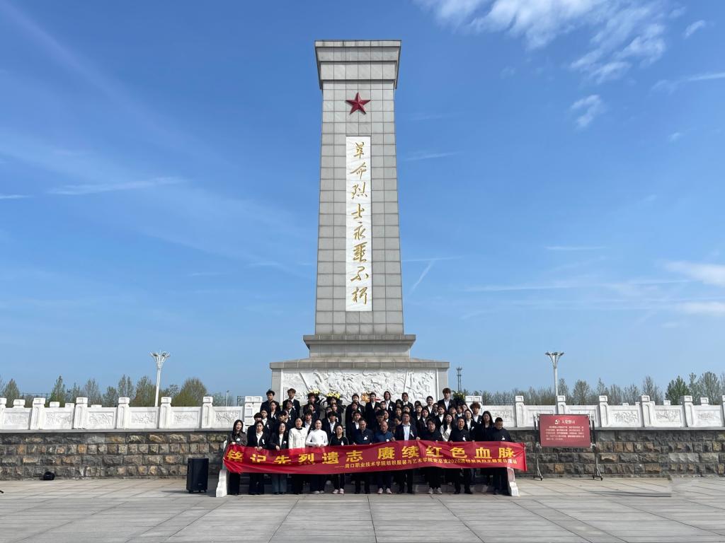 党员教师蔚春抒、学生代表赵晨阳分别发言,号召大家铭记先烈事迹、传承红色精神、勇担时代使命,以实际行动告慰先烈英灵。在杨晨的领誓下,全体师生面向鲜红的党旗,重温入党誓词,庄严的誓言回荡在烈士陵园上空,彰显着师生们传承先烈遗志、砥砺前行的坚定信念。活动最后,全体师生瞻仰烈士墓,缅怀先烈,寄托哀思。