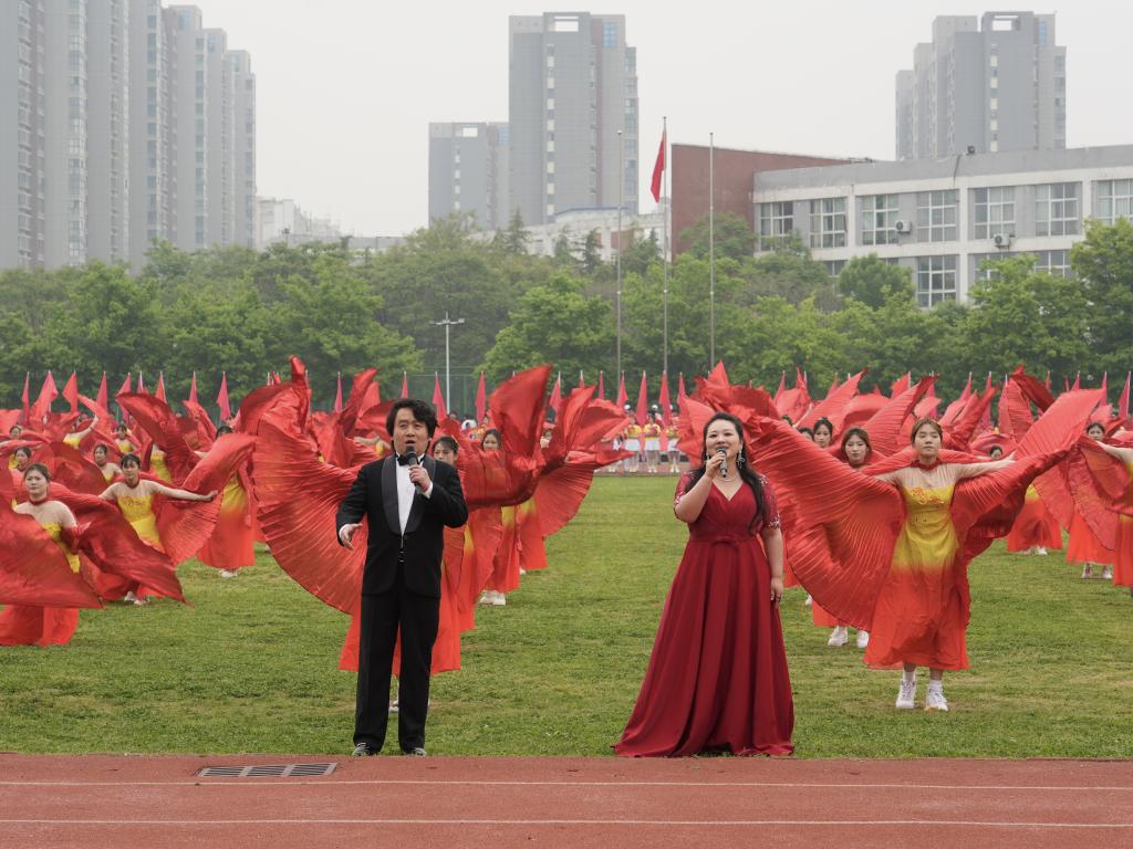 文艺表演环节精彩纷呈。活力四射的动感啦啦操率先登场,明快的节奏与整齐划一的舞步交织,洋溢着蓬勃的青春朝气;随后,高飞、马颖超两位老师倾情献唱,身着红金舞裙的同学们翩跹起舞,裙摆翻飞、身姿飒爽,凭借灵动的艺术表现力震撼全场。