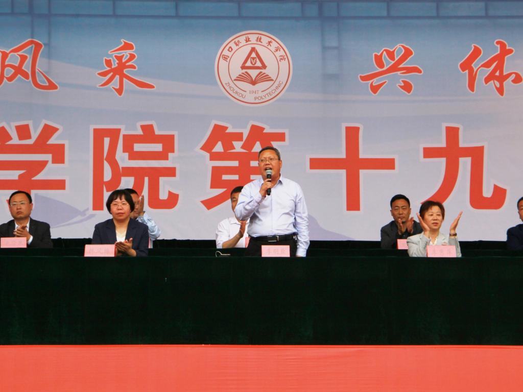 4月17日下午,随着校党委副书记李明臣宣布运动会闭幕,周口职业技术学院第十九届田径运动会圆满收官。